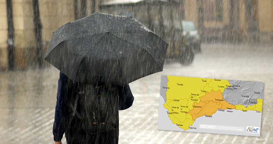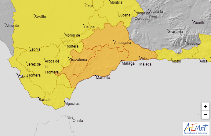 Orange alerts (major risk) for heavy rain and thunderstorms for the Serrania de Ronda in Spain’s Andalucia from AEMET, the state weather agency.